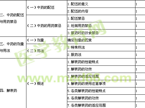 | 四、解表藥 | (三)發(fā)散風(fēng)熱藥 | 薄荷、牛蒡子、蟬蛻、桑葉、菊花、柴胡、葛根的功效、應(yīng)用、用法用量 | 1 | |