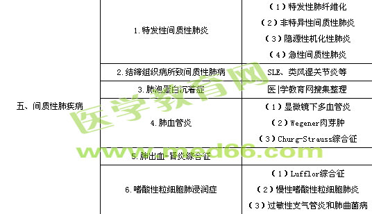 | 9.其他 | (1)矽肺 (2)石棉肺 (3)藥物性肺病 (4)Langerhans組織細胞增生癥 |