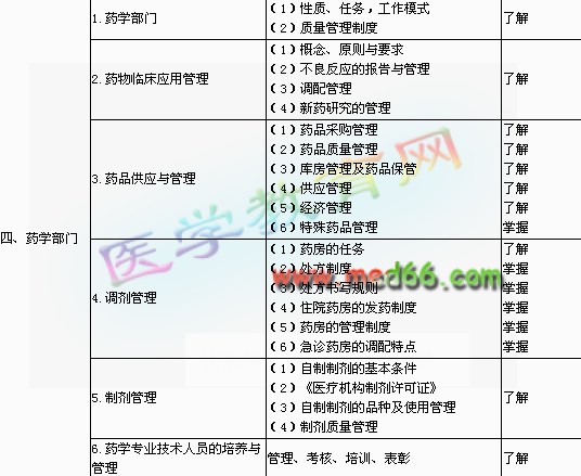 | 三、醫(yī)院藥學(xué) | 1.醫(yī)院藥學(xué)的概念與特點 | (1)醫(yī)院藥學(xué)的概念 (2)醫(yī)院藥學(xué)的特點 (3)醫(yī)院藥學(xué)的發(fā)展過程 | 了解 |