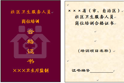 《社區(qū)衛(wèi)生服務(wù)人員崗位培訓(xùn)合格證書(shū)》樣式