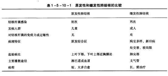 原發(fā)性肺結(jié)核和繼發(fā)性肺結(jié)核在許多方面有不同的特征,詳見表l—5—10—1。