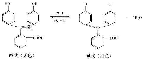 從離解平衡式可以看出,當(dāng)溶液由酸性變化到堿性,平衡向右方移動,酚酞由酸式色轉(zhuǎn)變?yōu)閴A醫(yī)|學(xué)教育網(wǎng)搜集整理式色,溶液由無色變?yōu)榧t色;反之,由紅色變?yōu)闊o色。