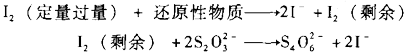 剩余碘量法是在供試品(還原性物質(zhì))溶液中先加入定量、過量的碘滴定液,待I2與測(cè)定組分反應(yīng)完全后,然后用硫代硫酸鈉滴定液滴定剩余的碘,以求出待測(cè)組分含量的方法。滴定反應(yīng)為: