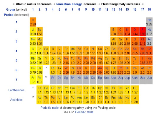元素電負性表(鮑林標度)