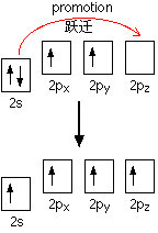 注意: 有的同學(xué)會對躍遷的電子變成向上的箭頭產(chǎn)生疑問,因?yàn)殡娮釉谲S遷之前是向下的箭頭。造成這一現(xiàn)象的原因很復(fù)雜——遠(yuǎn)遠(yuǎn)超過我們現(xiàn)在所討論的范圍。我們只需要養(yǎng)成這樣畫箭頭的習(xí)慣就可以了,再說這樣畫箭頭可以使軌域表示式看起來很整齊!
