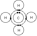 示意圖中的甲烷分子結(jié)構(gòu)與碳的電子排布(1s22s22px12py1) 之間存在著嚴(yán)重的沖突。根據(jù)碳的近代電子排布,其外層可以跟氫原子共享的電子(未配對電子)只有2個,而示意圖中的碳原子提供了4個電子與氫原子共享。