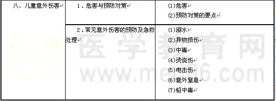 | 3.營養(yǎng)性疾病管理 | (1)營養(yǎng)不良 (2)維生素D缺乏性佝僂病 (3)維生素A缺乏癥 (4)營養(yǎng)性缺鐵性貧血 | |