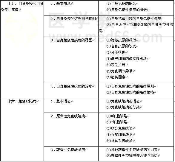 | 十八、移植免疫 | 1.基本概念 | (1)自體移植、同種異基因移植、異種移植 (2)直接識(shí)別、間接識(shí)別 (3)宿主抗移植物反應(yīng)、移植物抗宿主反應(yīng) |