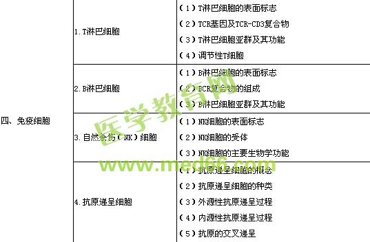 | 十八、移植免疫 | 1.基本概念 | (1)自體移植、同種異基因移植、異種移植 (2)直接識別、間接識別 (3)宿主抗移植物反應(yīng)、移植物抗宿主反應(yīng) |