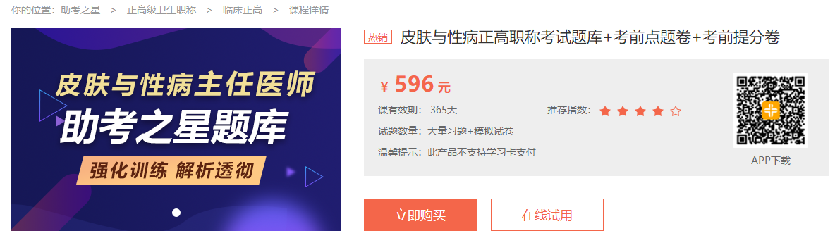 “皮膚與性病高級職稱考試題庫+考前點題卷+考前備考卷下載入口”相信很多考生朋友都很關(guān)注,醫(yī)學(xué)教育網(wǎng)小編整理皮膚與性病高級職稱考試題庫+考前點題卷+考前備考卷下載地址,希望對您有幫助!