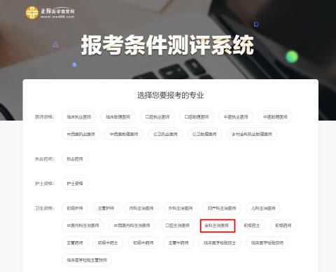第一步:進(jìn)入報(bào)考測評(píng)系統(tǒng),選擇全科主治醫(yī)師。進(jìn)入測試>