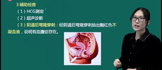 (3)陰道后穹隆穿刺:經(jīng)陰道后穹隆穿刺抽出黯紅色不凝血液,說明有血腹癥存在。