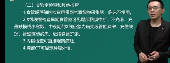 3.診斷方法:①食管鏡檢查:活檢,為金標(biāo)準(zhǔn);②食管拉網(wǎng):普查最好的方法。