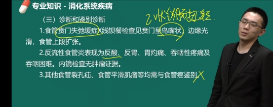 2.X線表現(xiàn):①早期:局限性管壁僵硬;②中晚期:充盈缺損,狹窄梗阻。