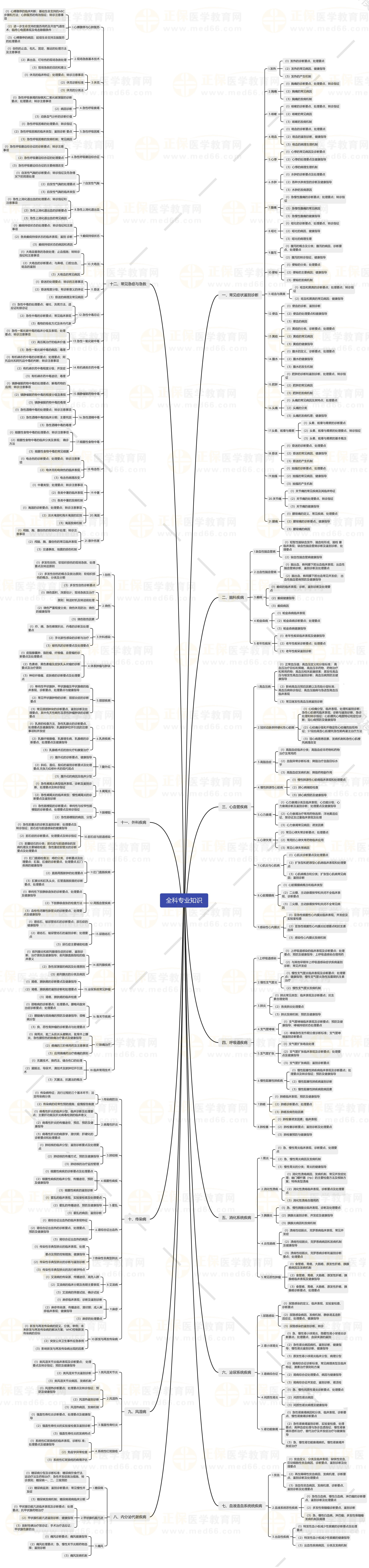 全科主治醫(yī)師考試實(shí)行全國統(tǒng)一組織、統(tǒng)一考試時(shí)間、統(tǒng)一考試大綱、統(tǒng)一考試命題、統(tǒng)一合格標(biāo)準(zhǔn)的考試制度,原則上每年進(jìn)行一次。2024年全科主治醫(yī)師考試新考期已經(jīng)開始了,為了幫助各位考生理清考試知識點(diǎn)脈絡(luò),更有針對性復(fù)習(xí),醫(yī)學(xué)教育網(wǎng)為大家整理全科主治醫(yī)師《專業(yè)知識》知識點(diǎn)地圖如下: