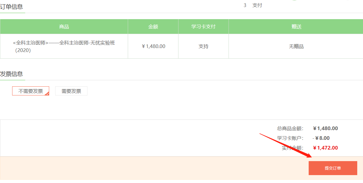 在訂單頁確認(rèn)無誤后,點(diǎn)擊“提交訂單”;