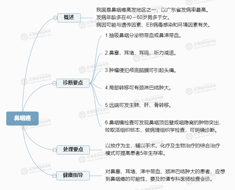 鼻咽癌全科主治醫(yī)師考試會涉及的內(nèi)容,為了幫助各位全科主治考生復(fù)習(xí)備考,醫(yī)學(xué)教育網(wǎng)整理鼻咽癌考點總結(jié)如下: