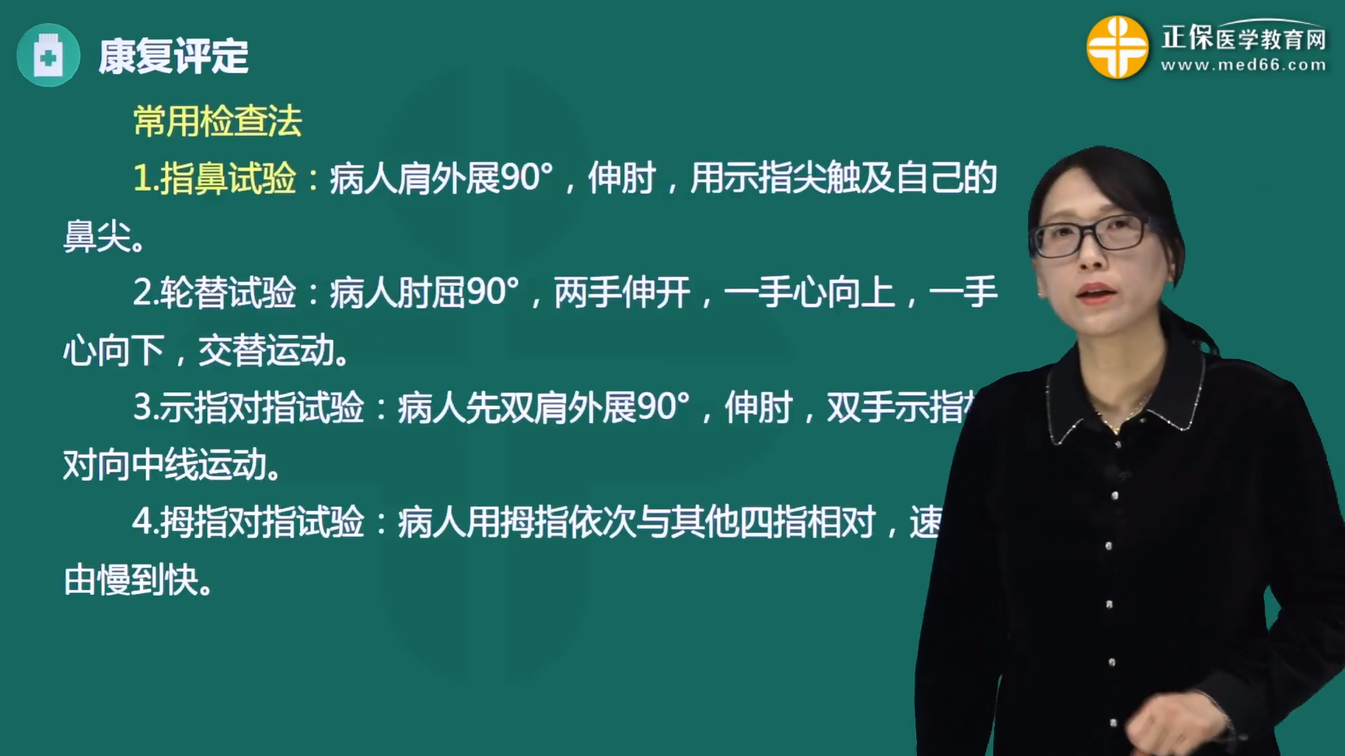 (3示指對指試驗(yàn):患者先雙肩外展90°,伸肘,雙手示指相對向中線運(yùn)動。