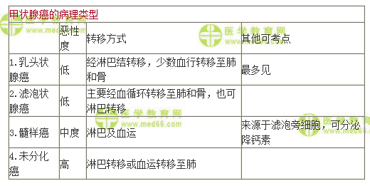 甲狀腺癌的病理類型