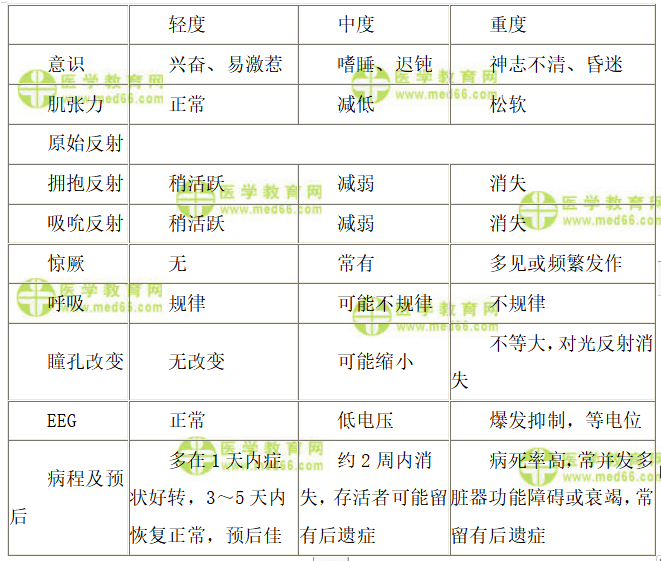 3.重度:出生至72小時癥狀最明顯,神志不清。