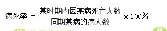 病死率表示確診某病者的死亡概率,是衡量疾病預(yù)后的指標,可反映疾病的嚴重程度,也可反映醫(yī)療水平和診治能力,常用于急性傳染病,較少用于慢性病。