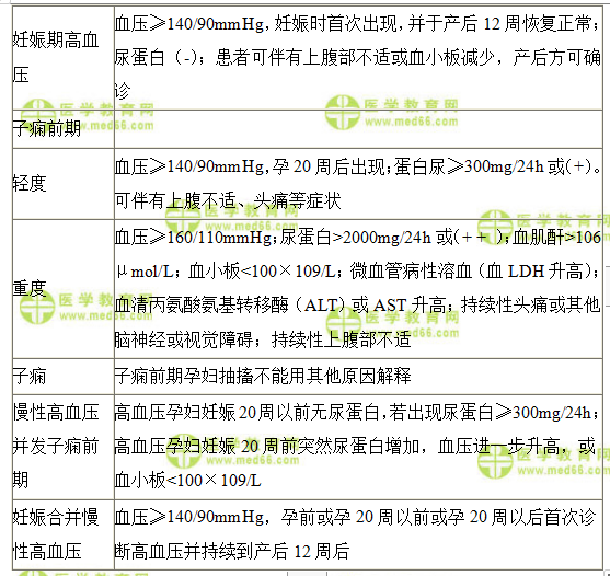 妊娠高血壓疾病分類及臨床表現(xiàn)