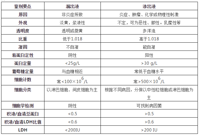 列表說明滲出液與漏出液的區(qū)別