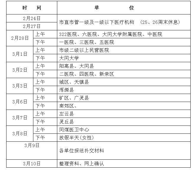 大同考點(diǎn)2017年醫(yī)師資格考試現(xiàn)場(chǎng)審核時(shí)間安排: