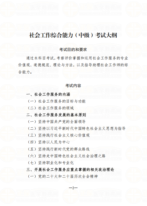 2026年社會工作者考試(中級)公布了,為了幫助各位考生復(fù)習,醫(yī)學教育網(wǎng)為大家提供大綱下載如下: