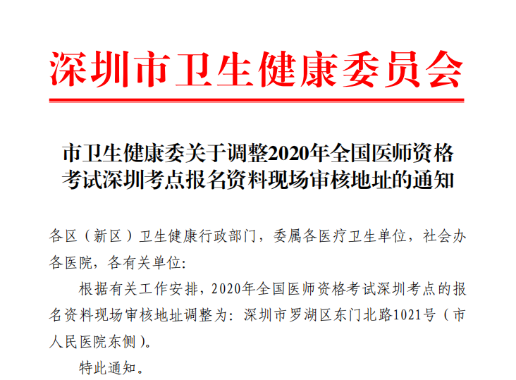 2020年醫(yī)師資格考試深圳考點(diǎn)報(bào)名資料現(xiàn)場(chǎng)審核地址的通知