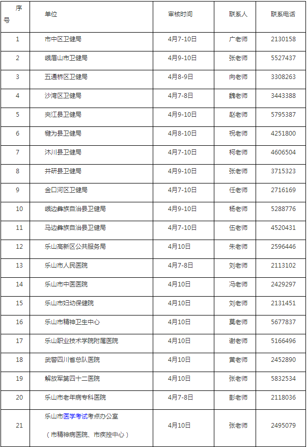 四川樂山市2020年醫(yī)師實踐技能考試報名現(xiàn)場審核公告