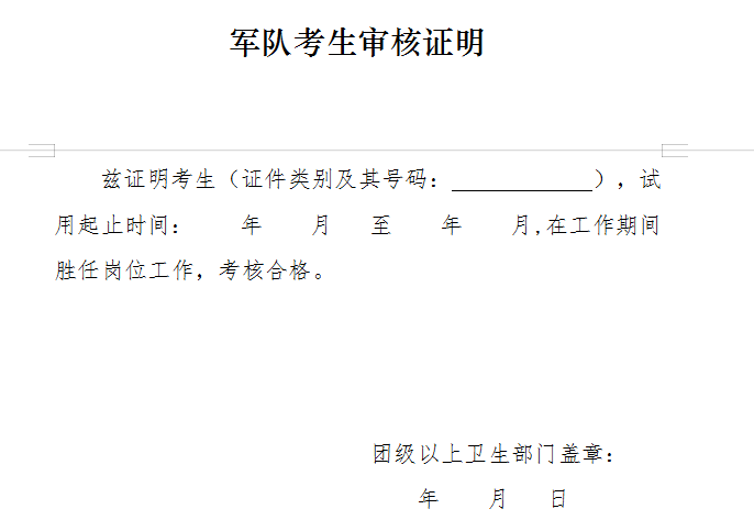 2021年醫(yī)師實(shí)踐技能考試四川省德陽考點(diǎn)報名軍隊考生審核證明