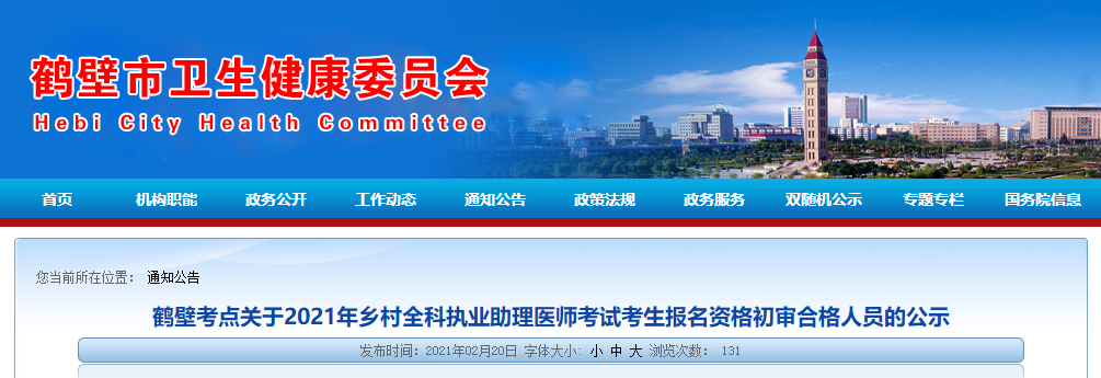 2021年鶴壁市鄉(xiāng)村全科執(zhí)業(yè)助理醫(yī)師實(shí)踐技能考試考生報(bào)名資格初審合格人員