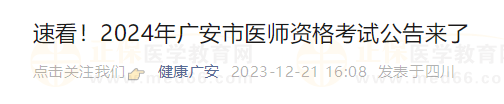 速看!2024年廣安市醫(yī)師資格考試公告來了