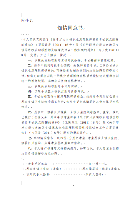 內(nèi)蒙古翁牛特旗考點(diǎn)2024年醫(yī)師資格考試知情同意書(shū)材料下載