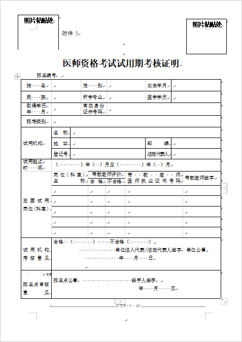 內(nèi)蒙古翁牛特旗2024年醫(yī)師資格考試試用期考核證明材料下載