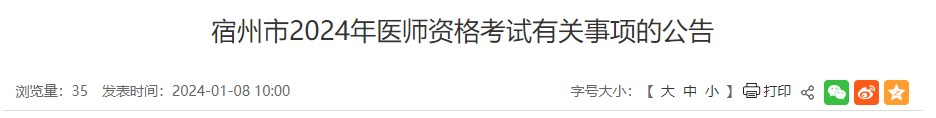 根據(jù)國(guó)家衛(wèi)生健康委醫(yī)師資格考試委員會(huì)公告(2023年第2號(hào))要求,結(jié)合我省實(shí)際,現(xiàn)將宿州考點(diǎn)2024年醫(yī)師資格考試有關(guān)事項(xiàng)公告如下: