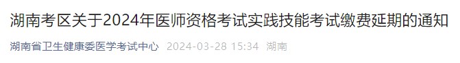 繳費延期!湖南省2024醫(yī)師資格實踐技能繳費延長至4月1日