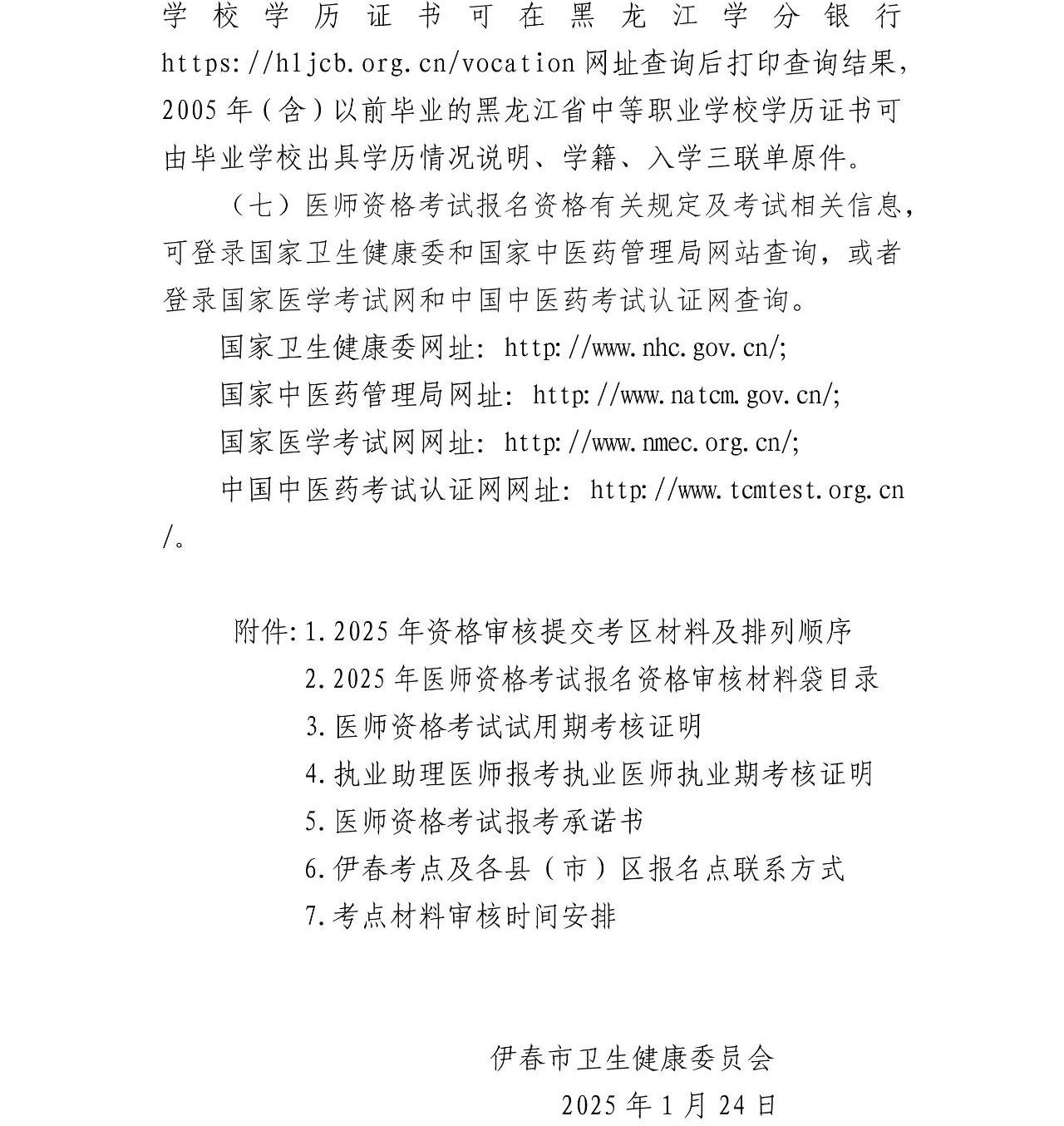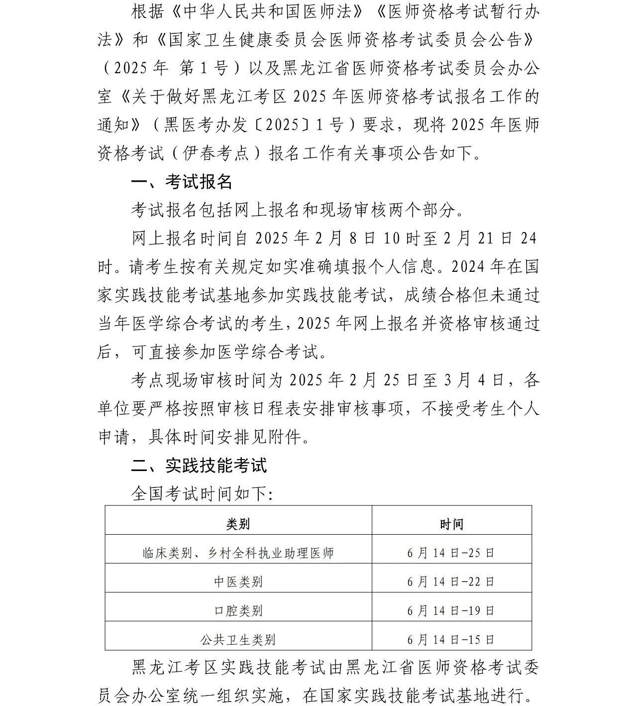 黑龍江伊春考點2025年醫(yī)師資格考試報名審核工作公告