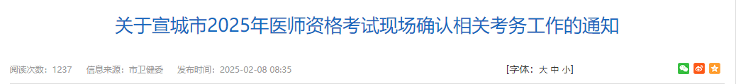 安徽宣城2025年醫(yī)師資格考試報名審核要求已出,要求社保!