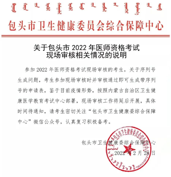 關(guān)于包頭市2022年醫(yī)師資格考試現(xiàn)場審核相關(guān)情況的說明