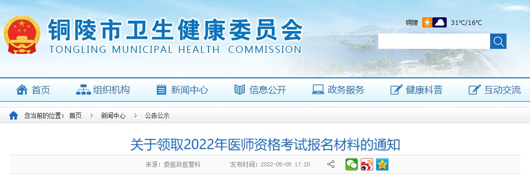 安徽銅陵市2022年醫(yī)師資格考試報(bào)名材料考生領(lǐng)取相關(guān)事宜的通知