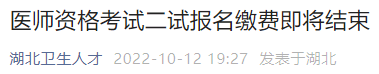 2022年湖北考區(qū)醫(yī)師資格考試醫(yī)學(xué)綜合考試(二試)網(wǎng)上報(bào)名繳費(fèi)即將結(jié)束