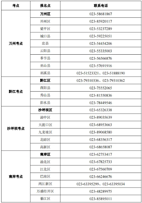 三、考點、報名點聯(lián)系方式
