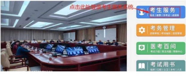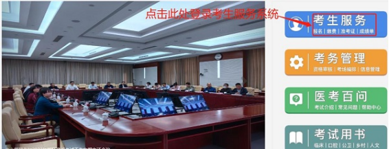 第一步:登錄國家醫(yī)學考試網(wǎng)——選擇“考生服務”,進入“國家醫(yī)學考試考生服務系統(tǒng)”。