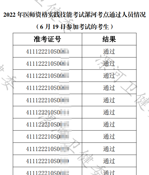2022年醫(yī)師資格實踐技能考試漯河考點通過人員情況 (6月19日參加考試的考生):