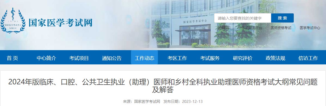 2024年臨床、口腔、公衛(wèi)及鄉(xiāng)村啟用新版考試大綱(點擊查看下載>>),國家醫(yī)學(xué)考試官網(wǎng)針對2024年版臨床、口腔、公共衛(wèi)生執(zhí)業(yè)(助理)醫(yī)師和鄉(xiāng)村全科執(zhí)業(yè)助理醫(yī)師資格考試大綱常見問題及解答如下,請相關(guān)考生仔細查看!
