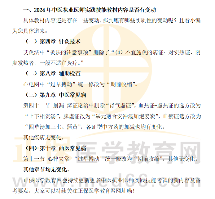 2024年中醫(yī)執(zhí)業(yè)醫(yī)師資格考試《實踐技能》官方教材變動變動匯總