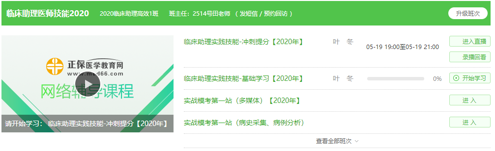醫(yī)學教育網(wǎng)臨床執(zhí)業(yè)助理技能考試培訓課程2020年新課已經(jīng)更新, 各位考生可進入醫(yī)學教育網(wǎng)我的網(wǎng)校我的家進行學習。未購課考生可點擊此處進入購買>>