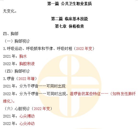 2022年公衛(wèi)執(zhí)業(yè)助理醫(yī)師考試實(shí)踐技能教材變化細(xì)則說明